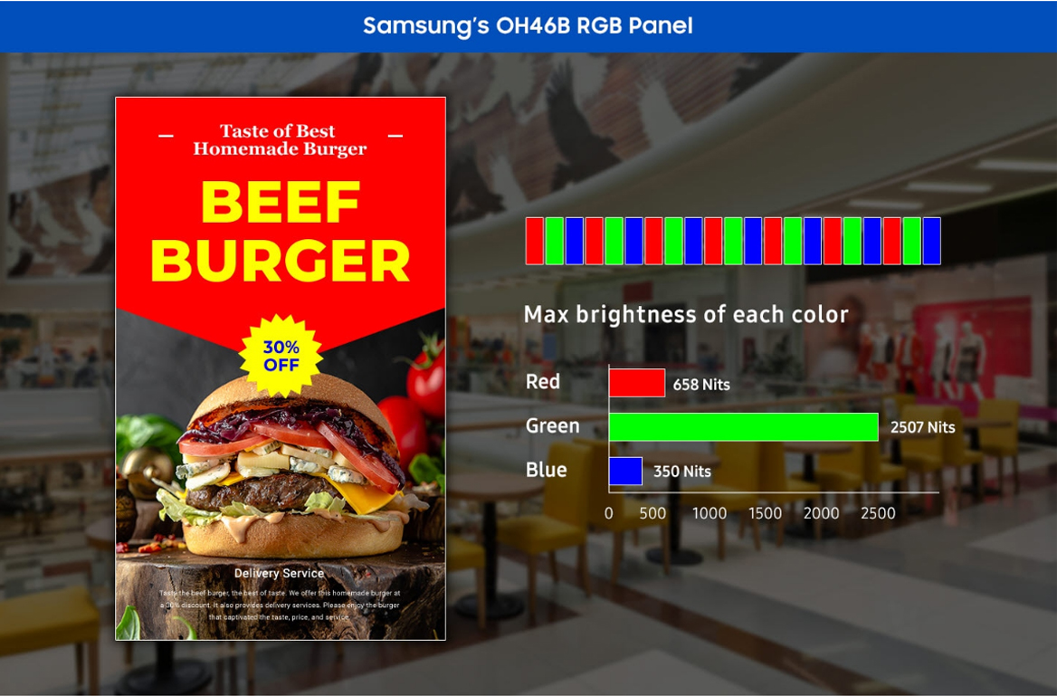 The OH46B delivers advanced color accuracy and brightness, creating vivid content through enhanced color reproduction of all red, green and blue shades. With crisp content being what customers now expect, the OH46B’s uncompromised picture quality will be sure to capture customer attention.