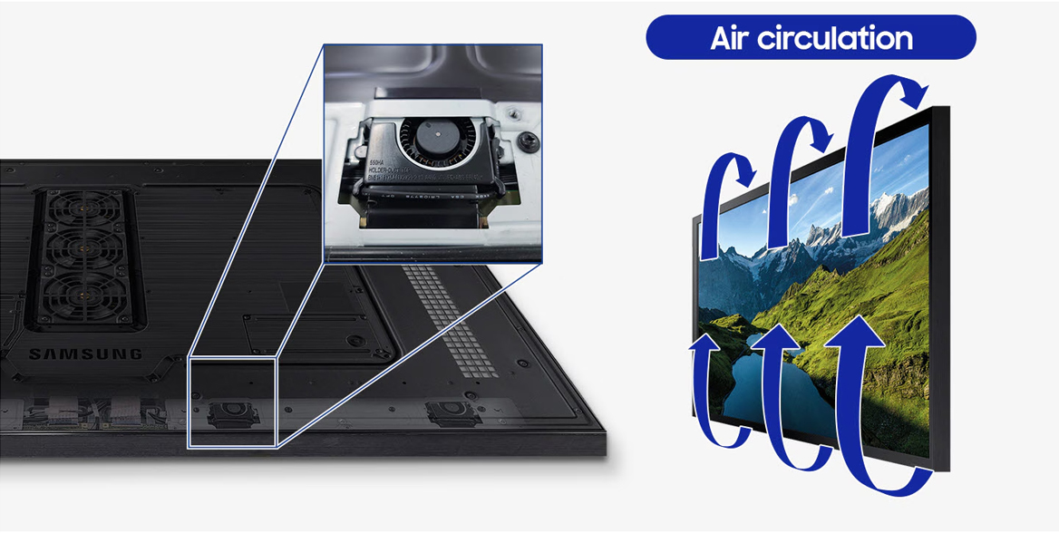 With four newly added, hidden fans in the downside of the display, the OH46B reduces concerns around external humidity issues such as condensation. The effective air propelling capabilities of the display by the fans enable seamless operation.